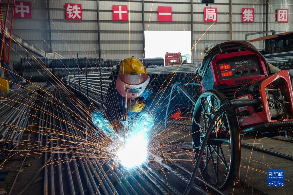 4月28日,工人在黃茅??绾Mǖ乐腔哿簣鲞M行焊接作業。