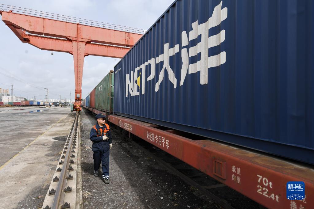4月28日,工作人員在進行班列開行前的檢查工作。