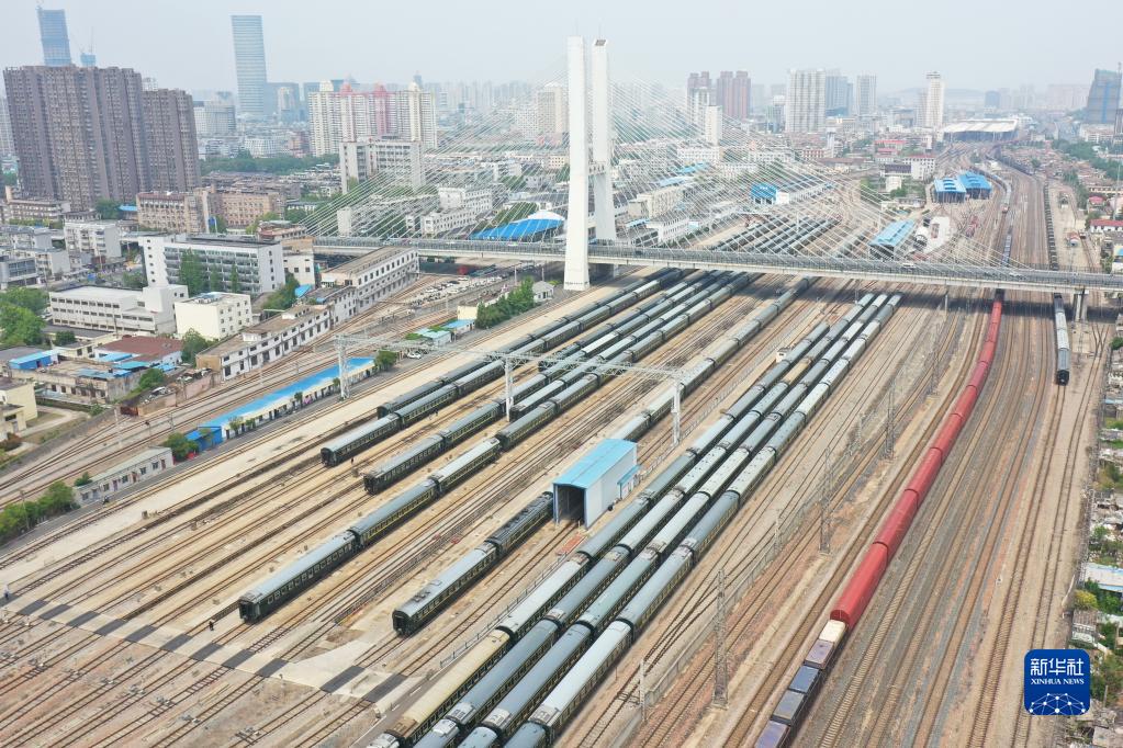 4月28日拍攝的中國鐵路上海局集團有限公司徐州站客車整備場(無人機照片)。