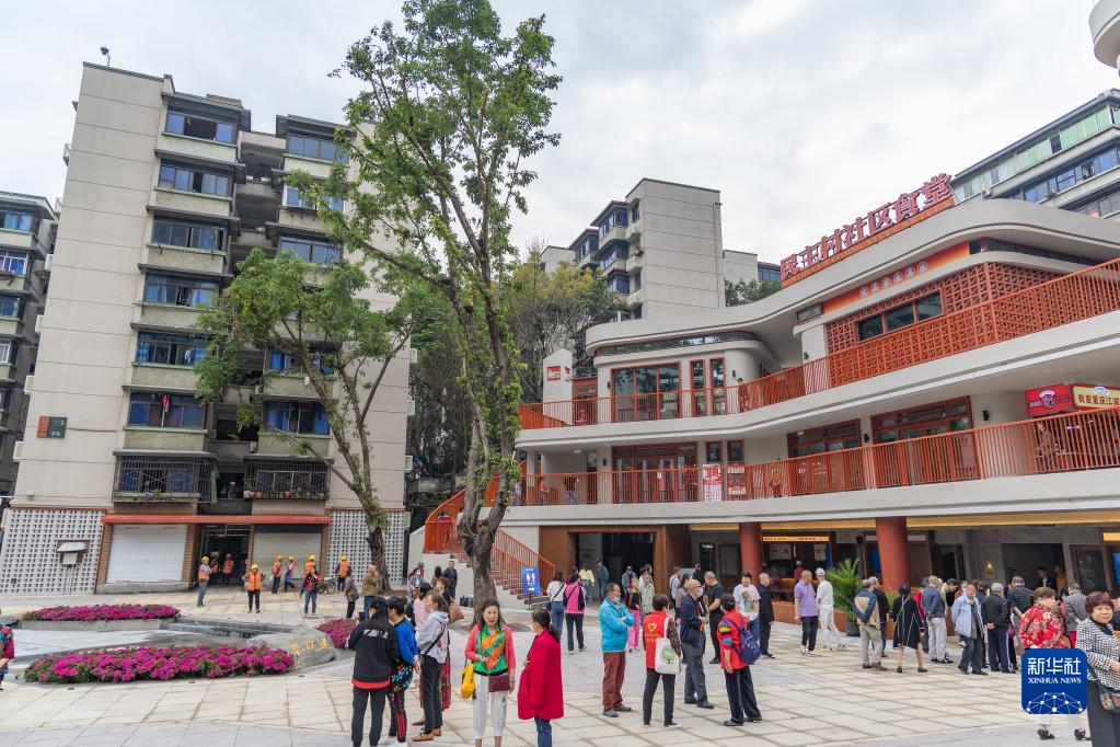 4月28日,重慶市九龍坡區謝家灣街道民主村片區城市更新項目(一期)正式竣工亮相,市民游客前來打卡。