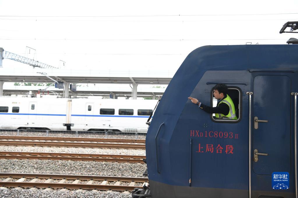 4月28日,尚志雄值乘的中歐班列途經六安站。新華社記者 劉軍喜 攝
