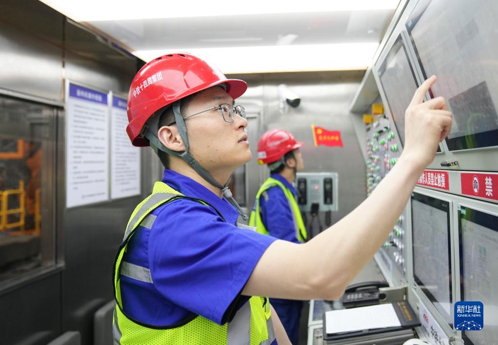 在北京東六環入地改造工程的西線隧道內,黃魯在控制室內操作京華號盾構機(4月19日攝)。