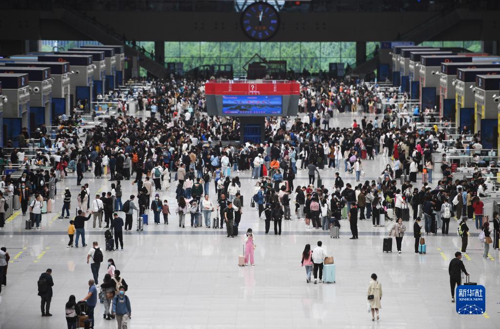 4月29日,旅客在鄭州東站候車大廳內候車。