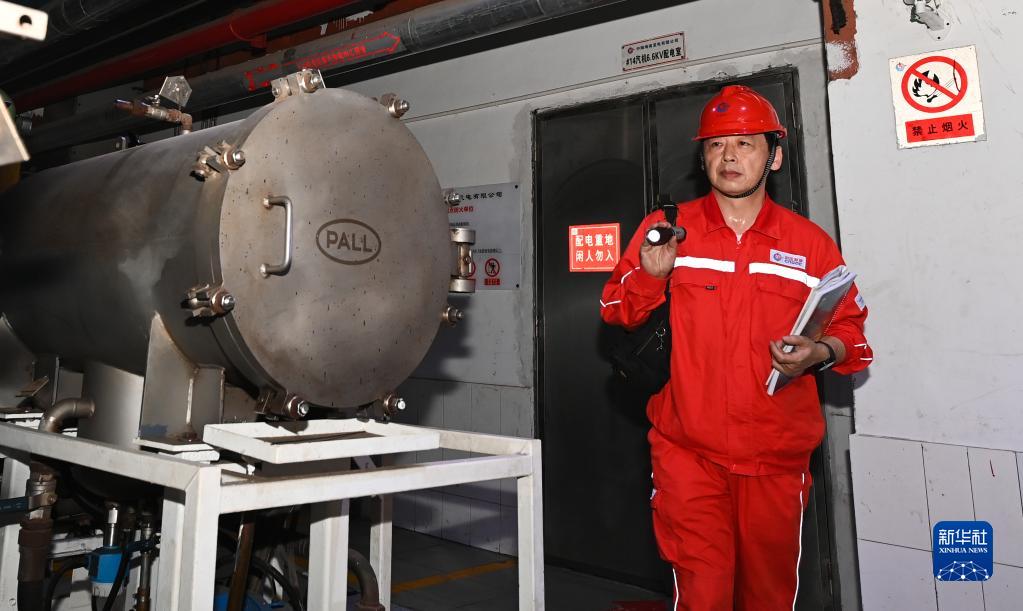 胡誠在位于海南儋州洋浦經濟開發區的中海海南發電有限公司廠區內進行檢查(4月20日攝)。