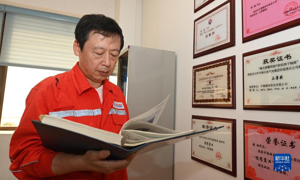 胡誠在位于海南儋州洋浦經濟開發區的中海海南發電有限公司創新工作室內查閱資料(4月20日攝)。