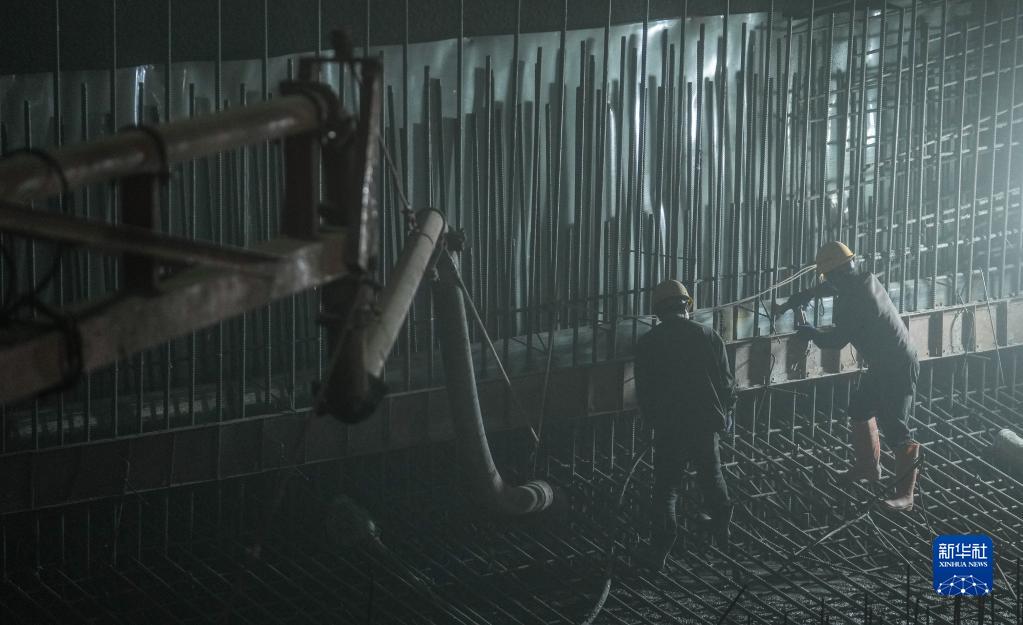 4月29日,中鐵十八局工人在貴陽地鐵S1線一期工程錦江路站施工。