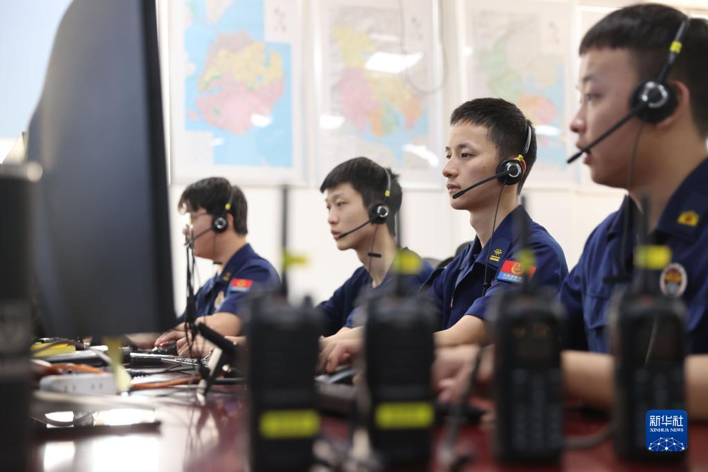 4月29日,消防員在福建省廈門市消防救援支隊指揮中心值班。