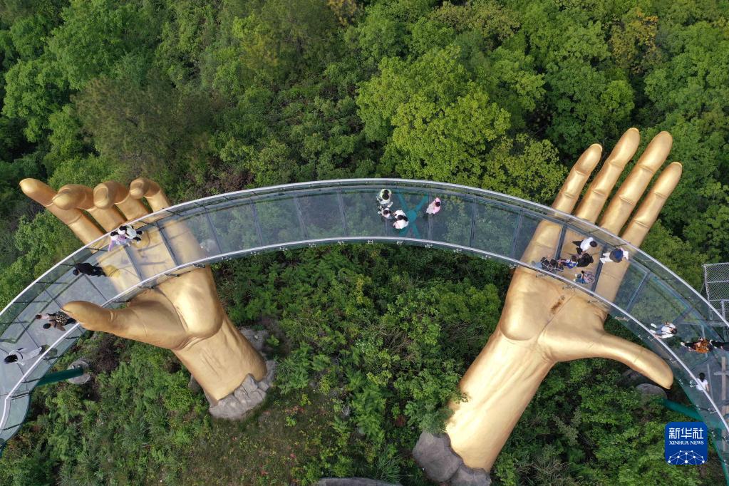 4月29日,游客在貴州省黔南布依族苗族自治州都勻市杉木湖景區游玩(無人機照片)。