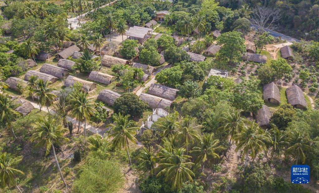 4月28日在海南省東方市白查村拍攝的黎族船型屋(無人機照片)。