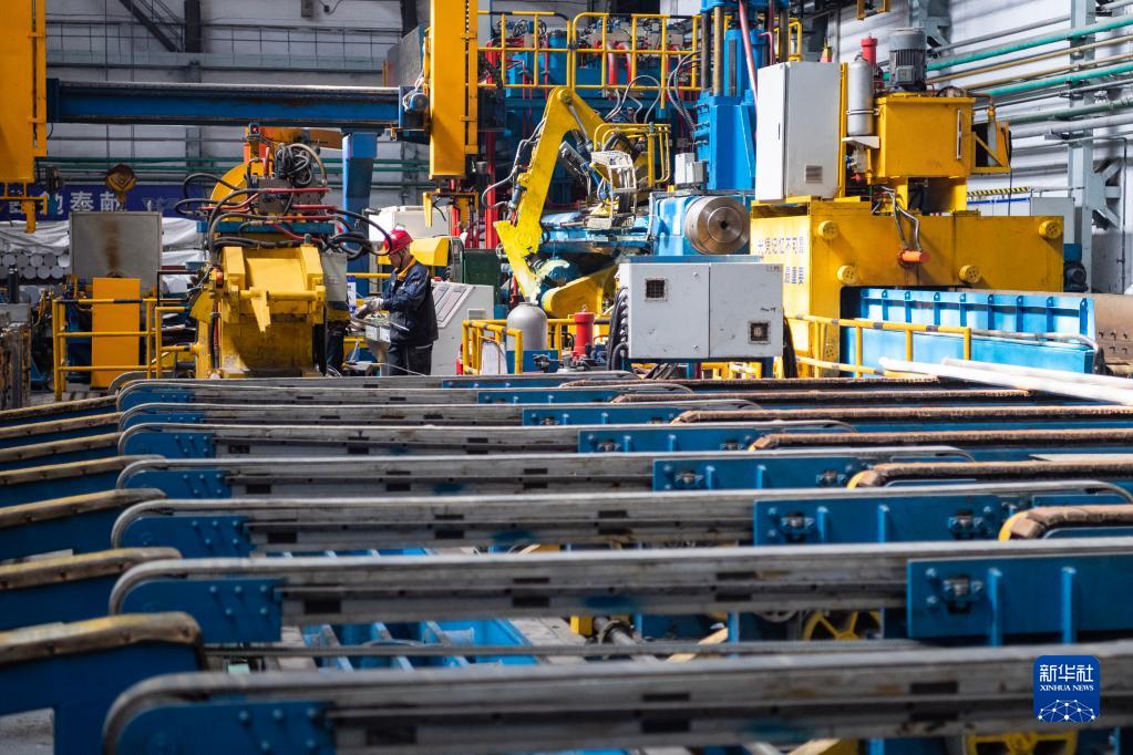 在位于哈爾濱市的中鋁集團東北輕合金有限責任公司,工人在生產廠區作業(4月13日攝)。