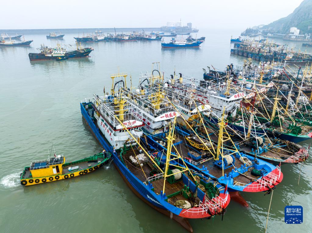 當日,在浙江省溫嶺市石塘鎮,漁船陸續進港???,迎接即將到來的休漁期。
