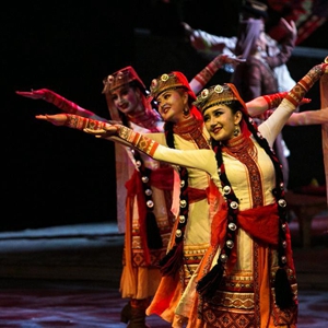 4月29日,在北京保利劇院,演員在表演音樂劇《拉齊尼·巴依卡》。