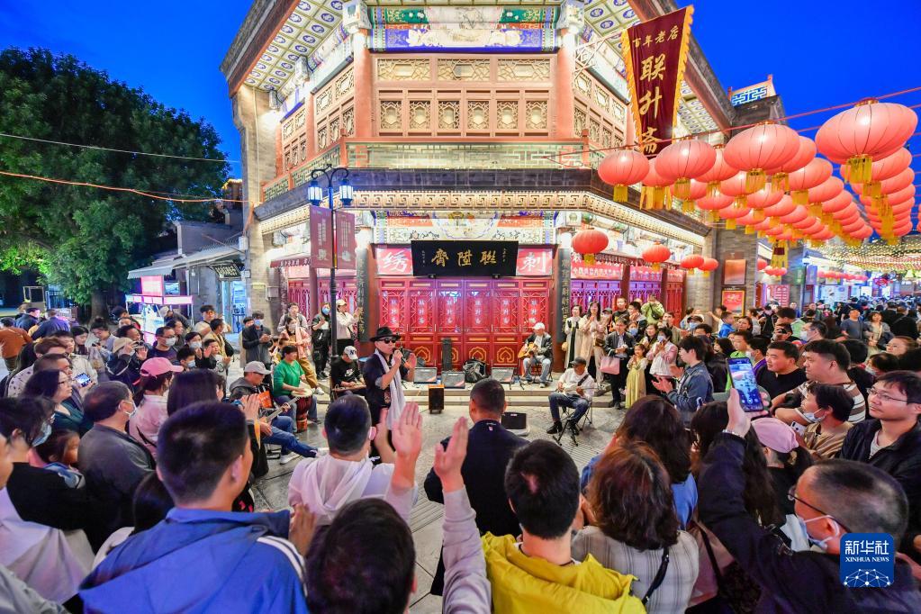 “五一”假期期間,作為“津門十景”之一的天津古文化街開啟了“夜游”模式,繁榮夜間文旅消費。全街百余戶商家延時經營,助力城市“夜經濟”活力提升。