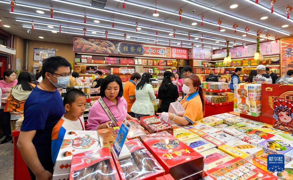 4月29日,游客在天津古文化街一家地方特色商品店選購商品。