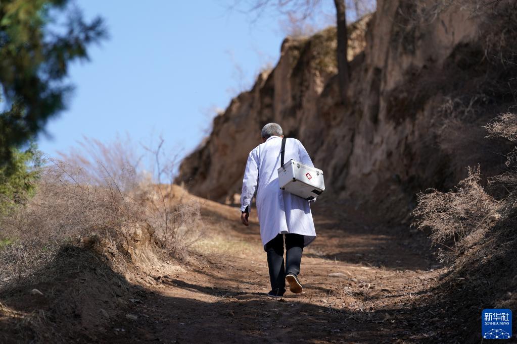 在山西省呂梁市石樓縣和合鄉鐵頭村,村醫張尚保走在出診的路上(2021年3月23日攝)。