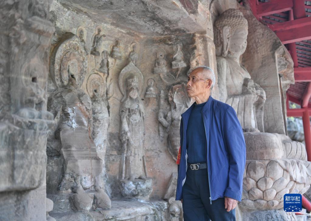 4月3日,吳忠富在臥佛院內巡查。