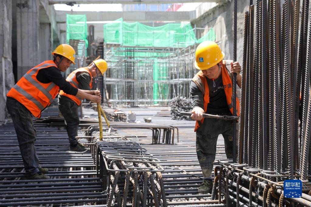 4月30日,中建五局工人在安徽省合肥市軌道交通7號線工地作業。