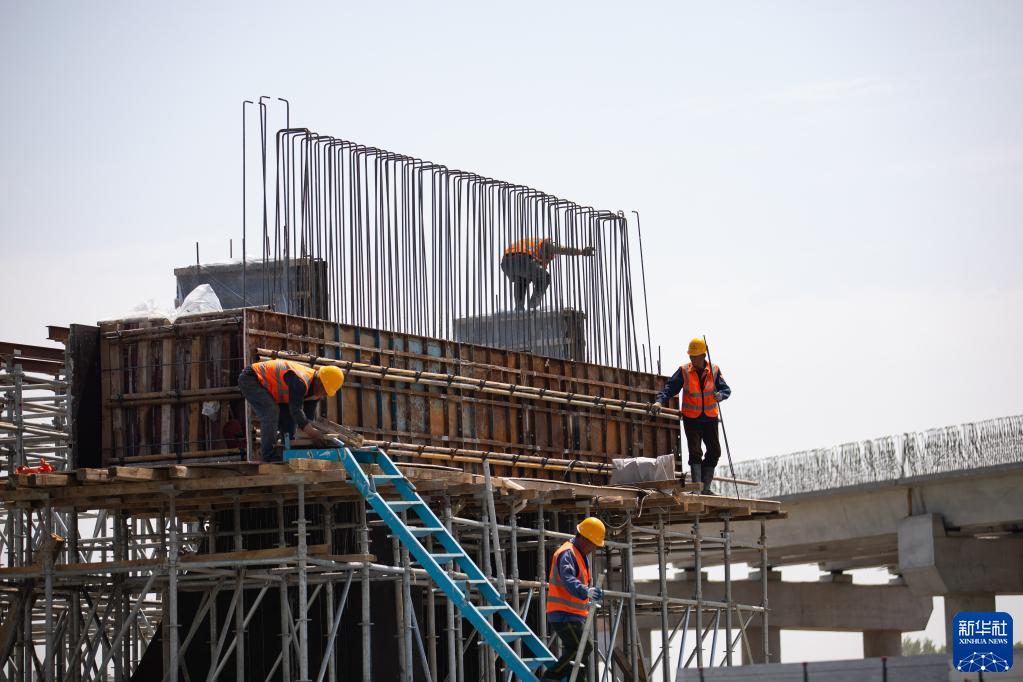 4月30日,在山東省東青高速公路改擴建工程廣饒段新建廣饒互通施工現場,工人們在現場忙碌。