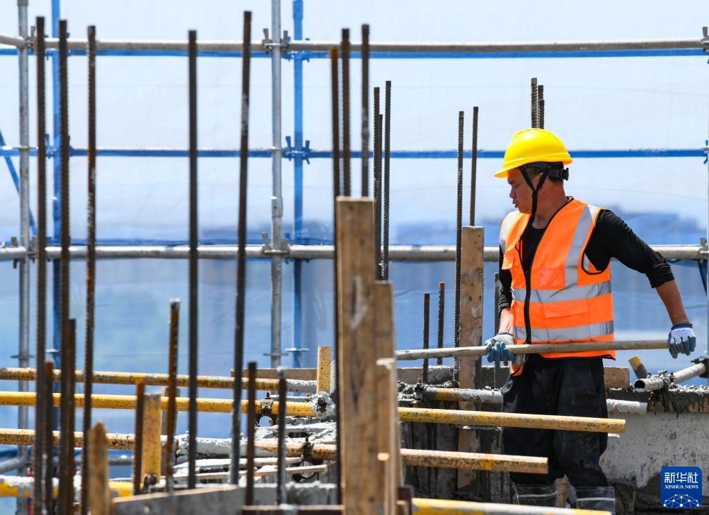 4月30日,中建三局的工人在成都芯谷產業功能區配套項目施工作業。