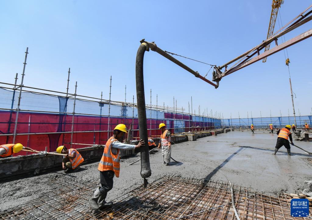 4月30日,中建三局的工人在成都芯谷產業功能區配套項目澆筑混凝土。