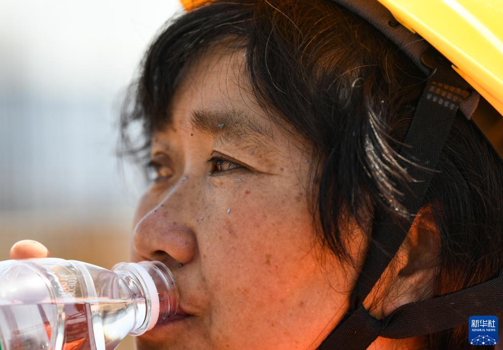4月30日,中建三局的工人在成都芯谷產業功能區配套項目施工間隙喝水。