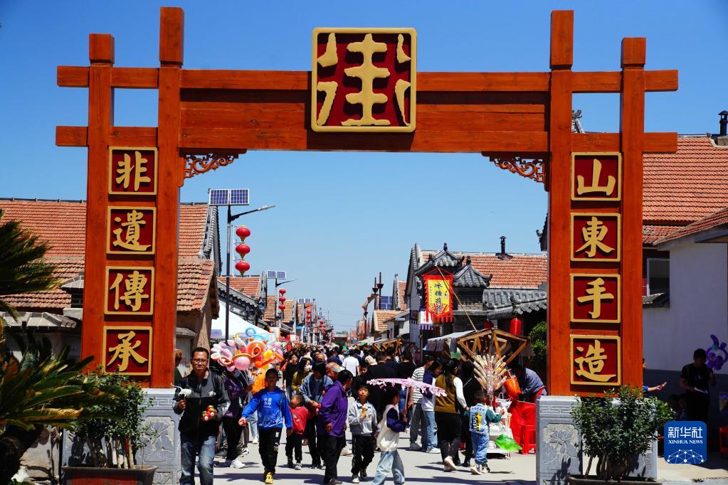 4月30日,游客在山東省利津縣“老街長巷”非遺文化街游玩。