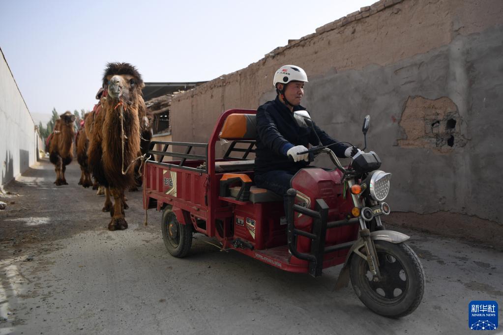 “從前,駱駝是絲綢之路上重要的交通工具;現在,我們的駱駝已變成敦煌絲路旅游上的重要一環,為游客帶來不一樣的體驗,也是我們重要的增收手段?!痹卵廊宕迕癫芪娜A一邊走一邊向游客介紹。