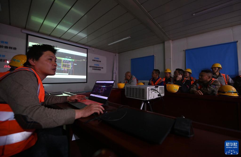 齊國超在工地會議室內進行技術交底(4月29日攝)。
