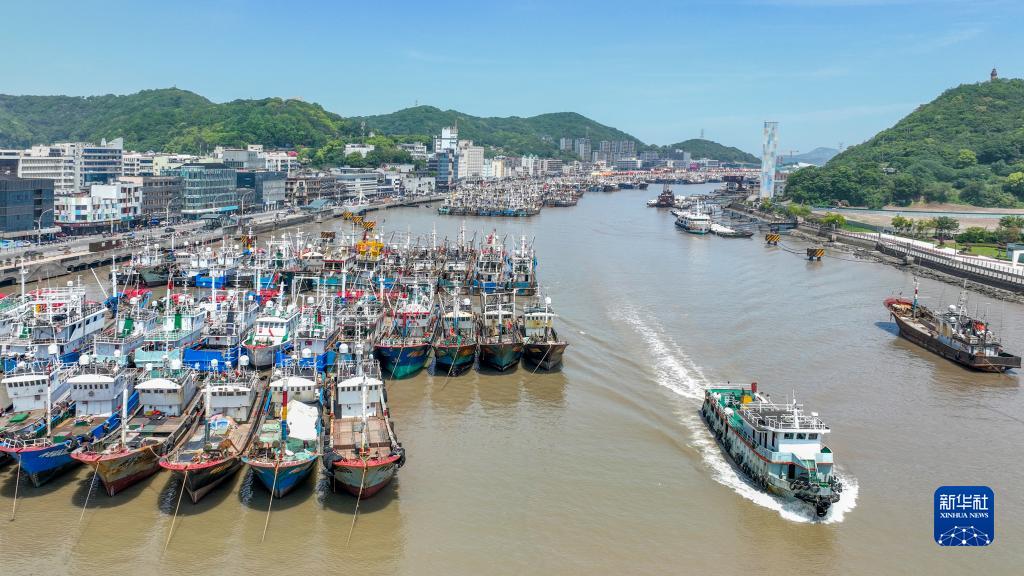 4月30日,在浙江省舟山市普陀區沈家門漁港,漁船歸港準備休漁(無人機照片)。