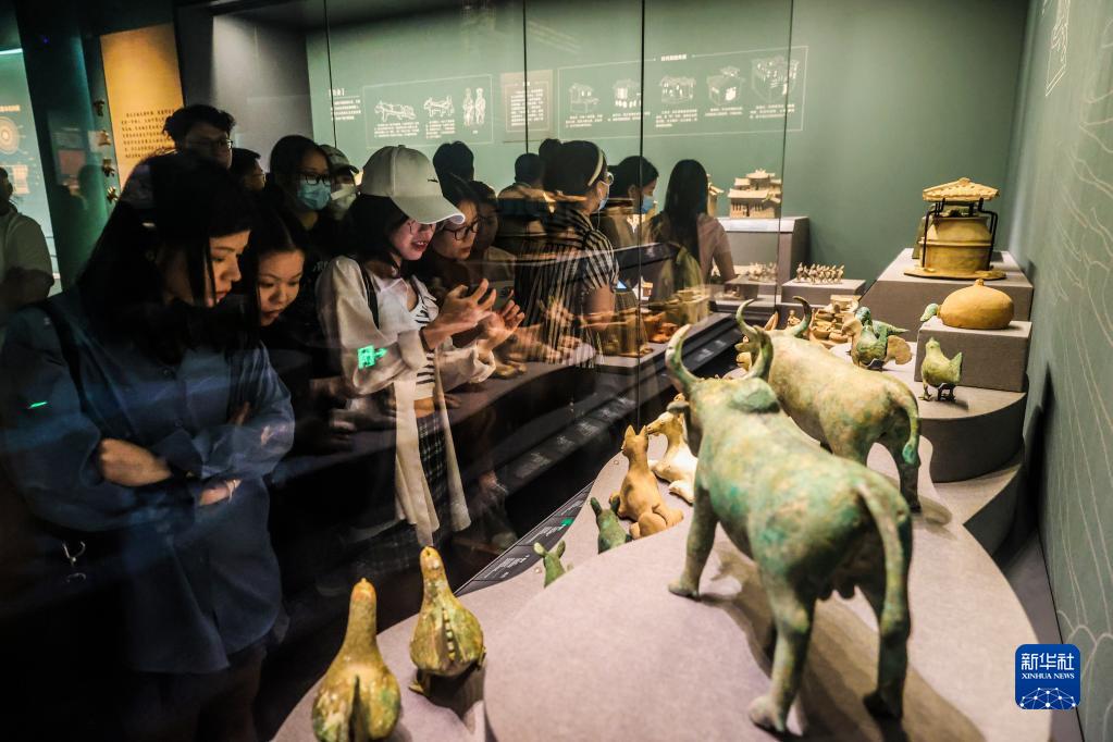 4月30日,游客在廣西壯族自治區博物館參觀廣西古代文明陳列展。