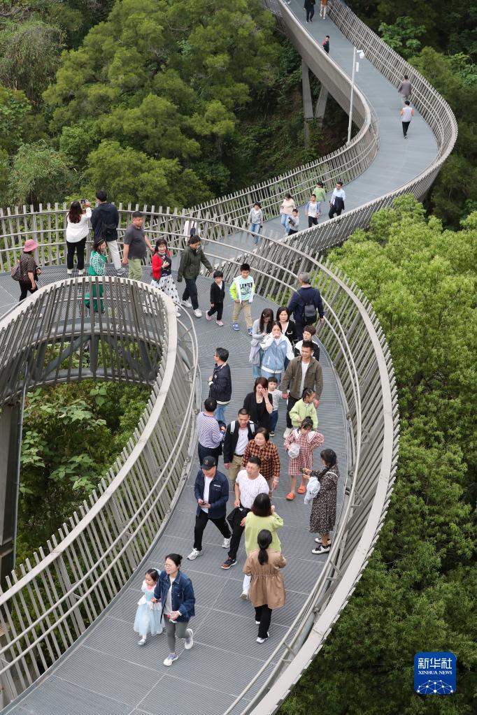 4月30日,游客在福建省福州市金牛山森林步道游覽。