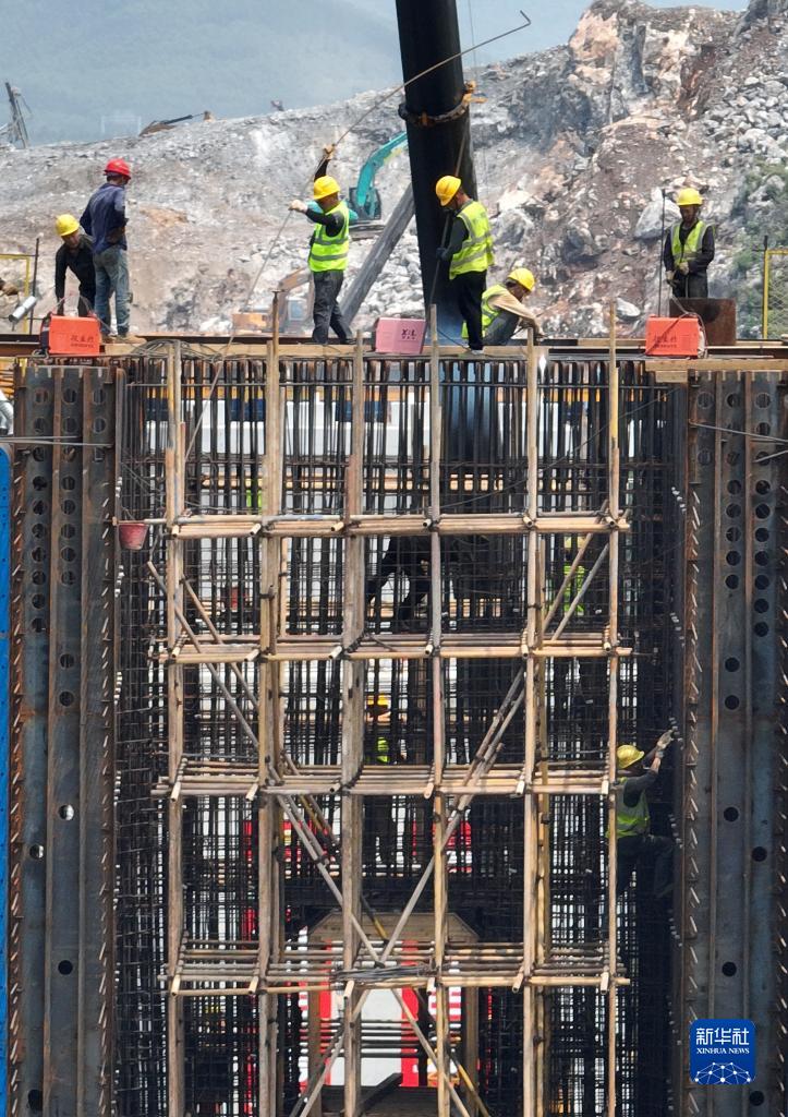 5月1日,在位于廣西柳州市柳江區穿山鎮的柳梧鐵路施工現場,建設者在項目工地上忙碌(無人機照片)。