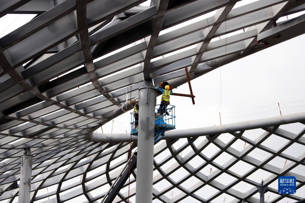 5月1日,工人在浙江省臺州市路橋機場改擴建項目施工現場施工。