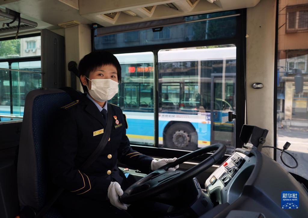 5月1日,在位于北京市朝陽區的柳芳公交場站,104路公交車駕駛員高國然駕駛車輛準備駛出。