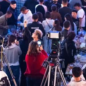 4月29日,在淄博燒烤街,來自全國各地的攝影師在拍攝燒烤節。