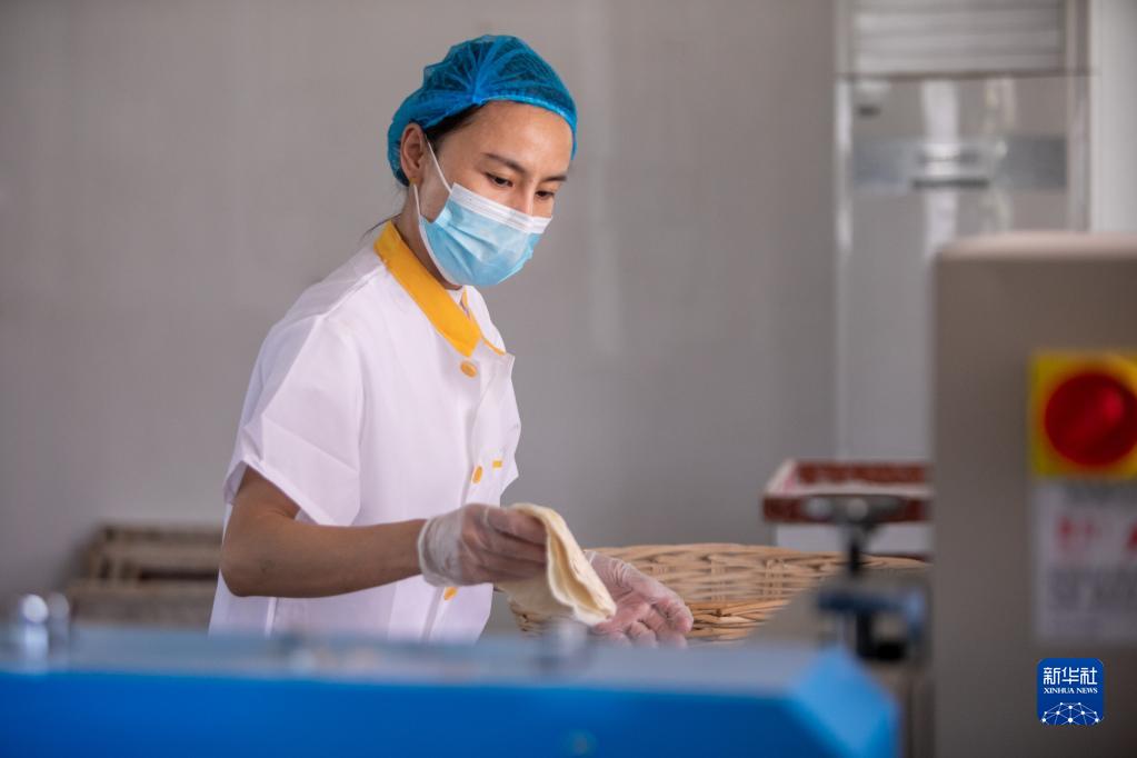 4月30日,在淄博市高青縣田鎮街道一家食品加工企業,工作人員在趕制小餅訂單。