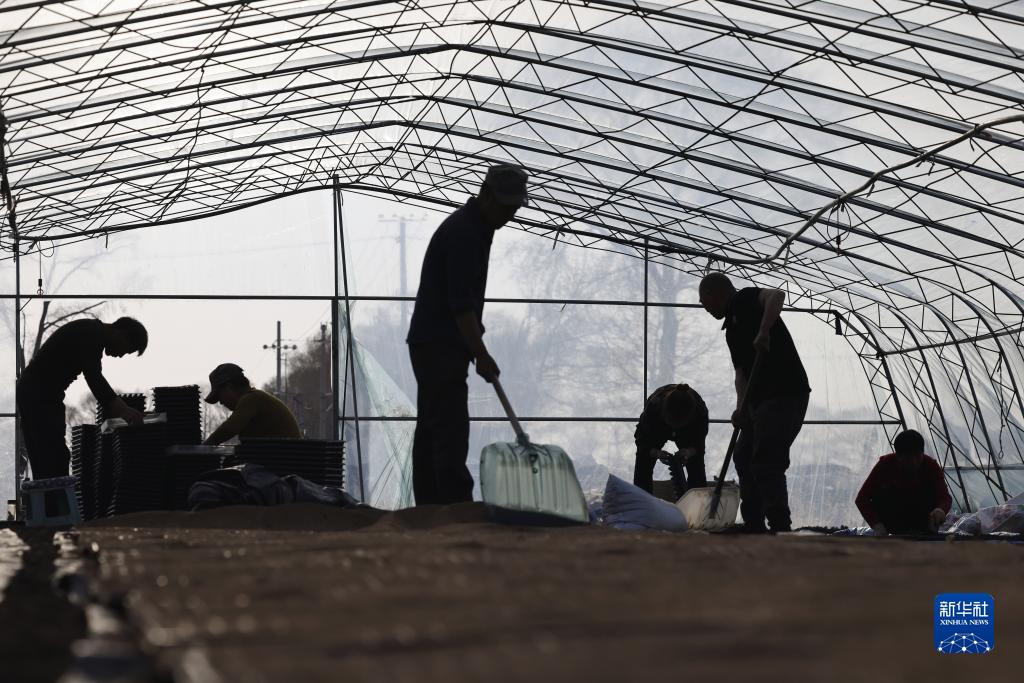 5月1日,河北省承德市豐寧滿族自治縣大灘鎮扎拉營村的農民在進行白菜育苗。