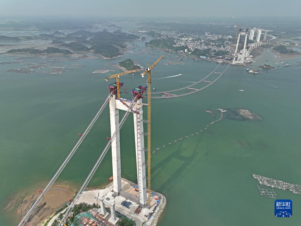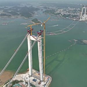 近日,位于欽州市的廣西最長跨海大橋——龍門大橋項目建設全面進入上部結構施工階段,其中龍門大橋主通航孔橋已完成主纜的架設,目前正在進行緊纜施工。