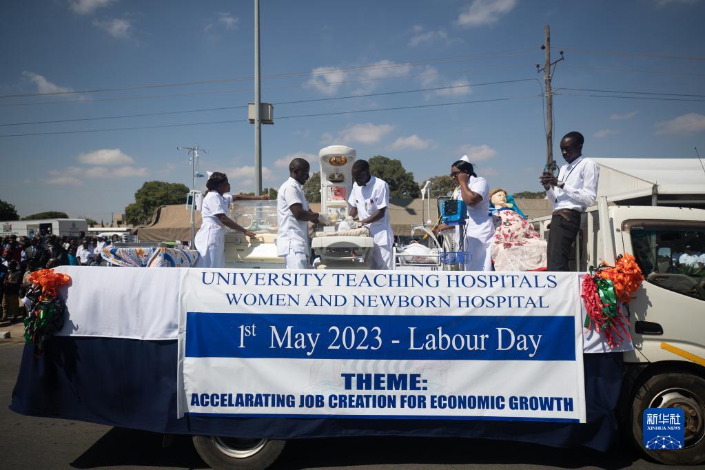 當天上午,贊比亞首都盧薩卡舉行游行活動, 慶?!拔逡弧眹H勞動節。