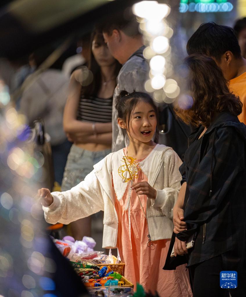 5月2日,游客在寧夏銀川市金鳳區閱彩城中街購買商品。