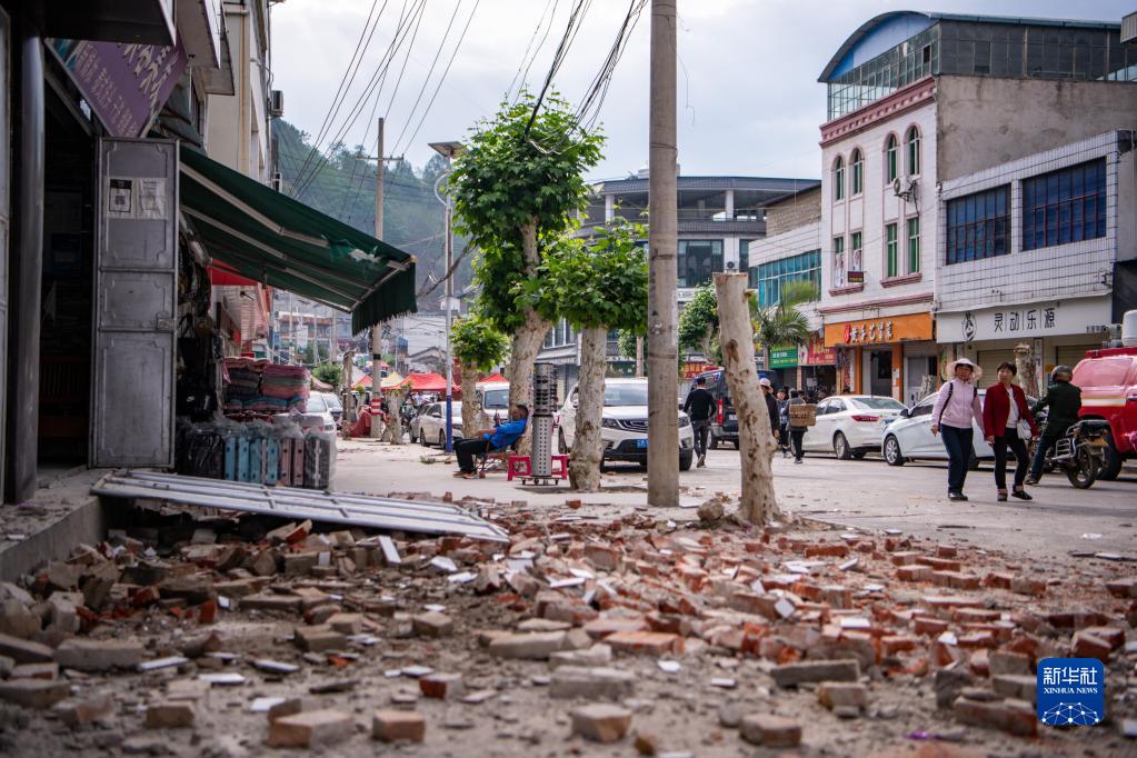 云南省保山市隆陽區瓦窯鎮一處受損的沿街房屋(5月3日攝)。