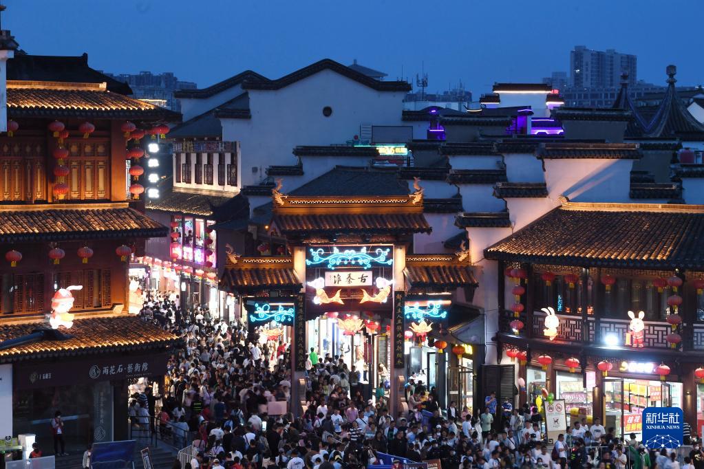 5月2日晚,游客在南京夫子廟景區參觀游覽。