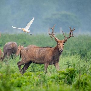 石首麋鹿國家級自然保護區成立于1991年,這里牧草豐富,濕地生態系統完整。30多年間,麋鹿種群繁衍擴散,逐漸形成了保護區、東升三合垸、小河楊波坦及湖南洞庭湖4個小種群,從最初引進的64頭發展到2500余頭,全部實現自然繁衍,恢復了野生習性。