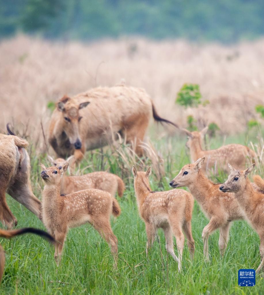 陽春三月,草長鶯飛,一群麋鹿在草地上悠閑漫步,幾頭幼鹿不時穿梭其中……近期,在位于湖北天鵝洲長江故道邊的石首麋鹿國家級自然保護區,麋鹿大家庭迎來了一批新成員。