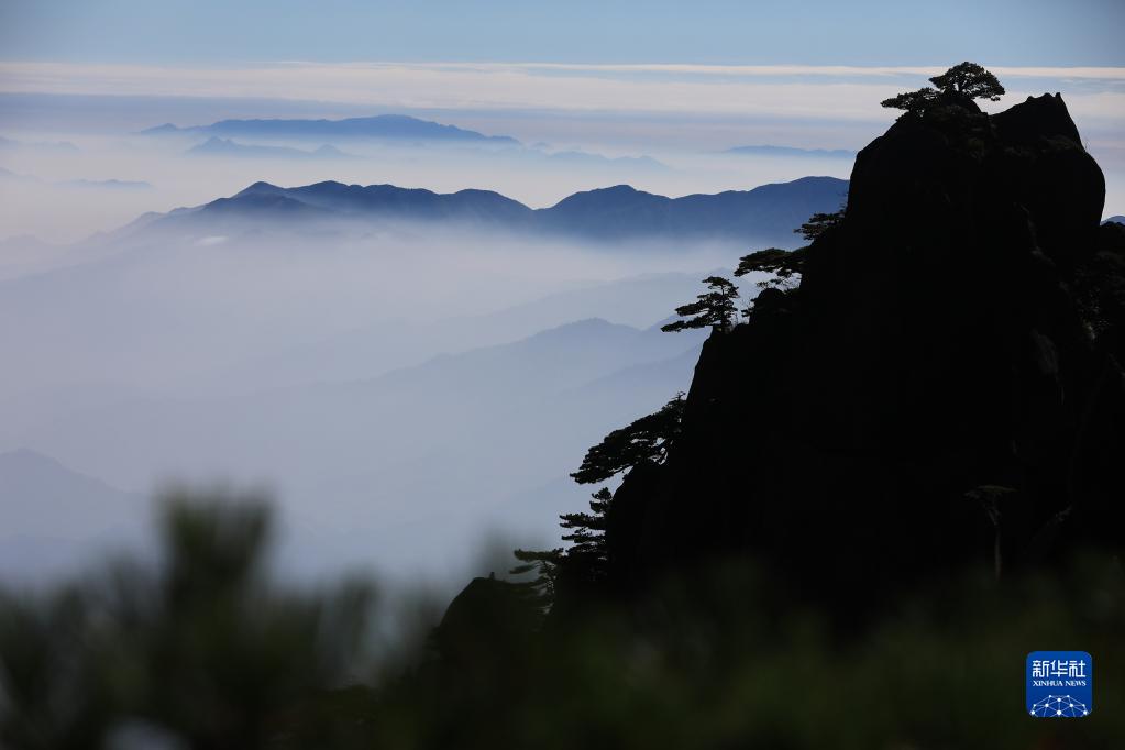 2022年10月16日,黃山群峰與云海相映,宛如水墨畫卷。