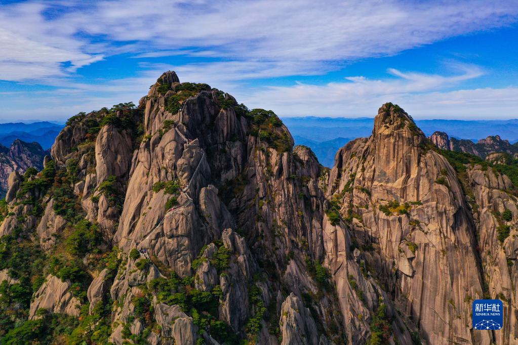 2022年10月20日,天高云淡,黃山蓮花峰風景秀美。