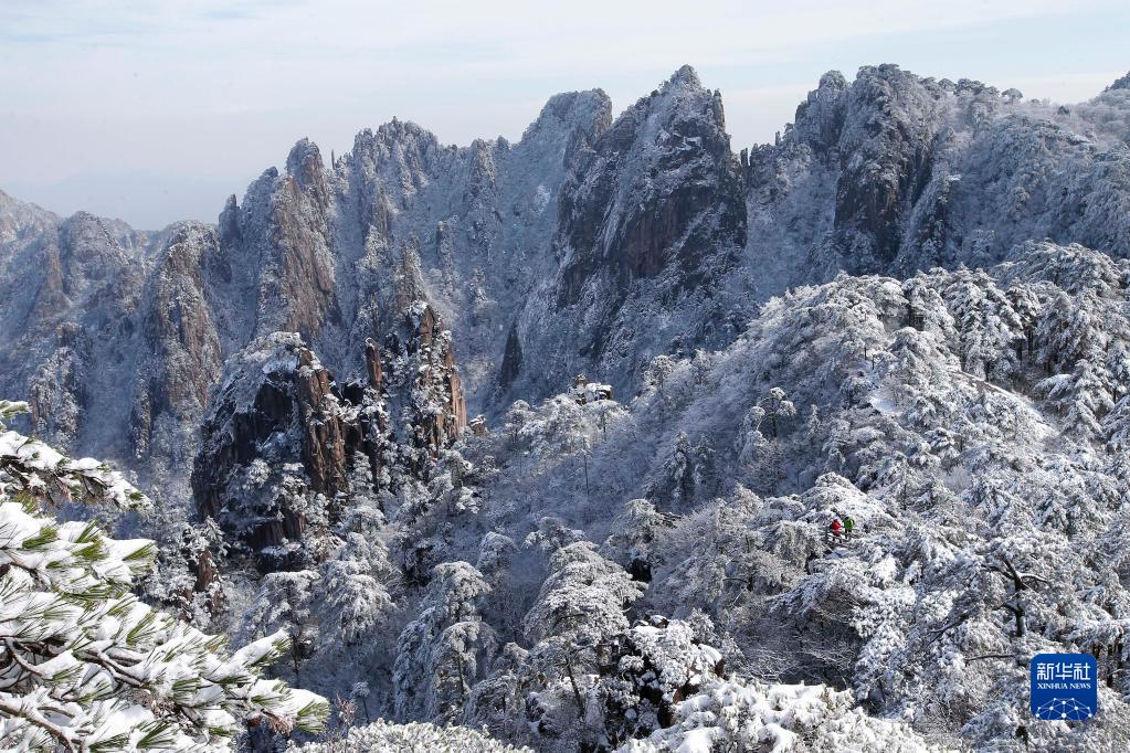 2021年11月22日,初雪過后,黃山群峰被白雪覆蓋。