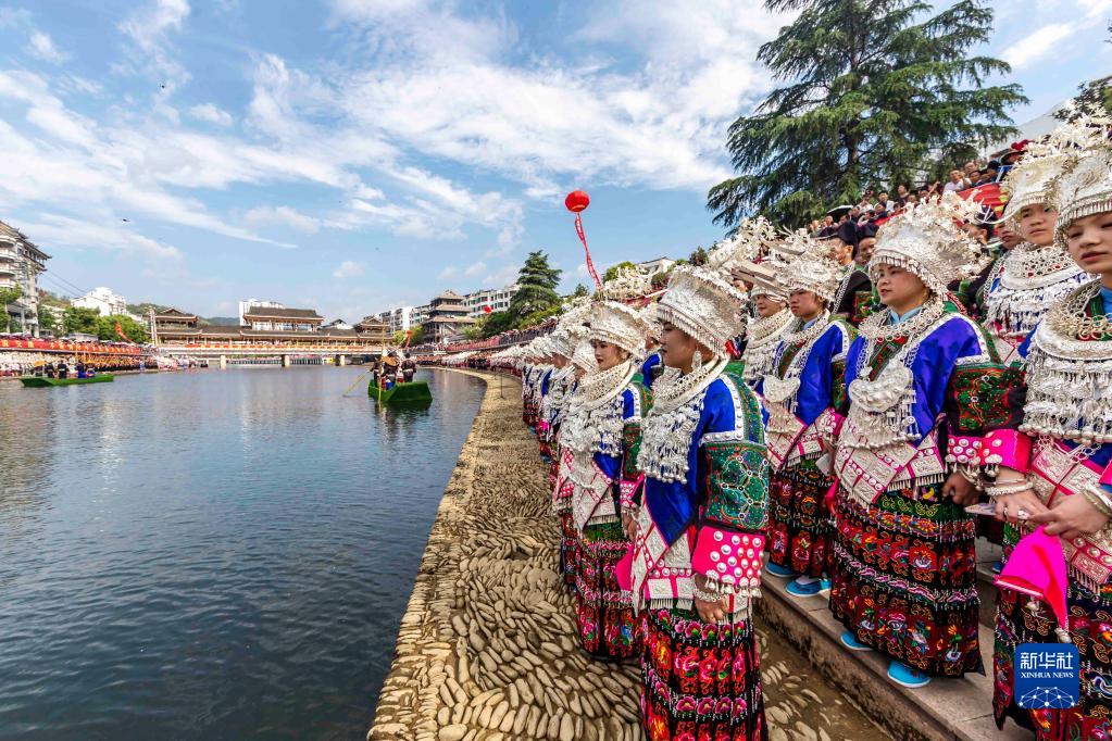 “五一”小長假期間,貴州省黔東南苗族侗族自治州臺江縣迎來一年一度的苗族姊妹節。頗具特色的盛裝游演、民族歌舞表演、苗家長桌宴、民族民間工藝品展示等系列活動吸引眾多游客前來觀賞游玩。