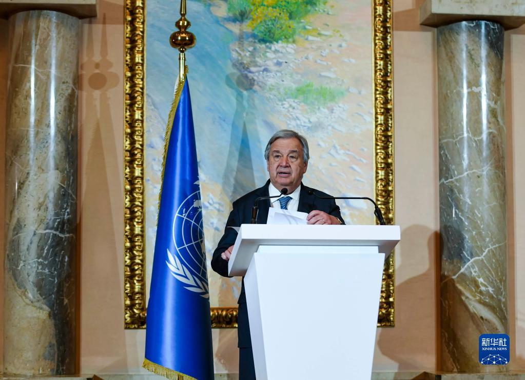 5月2日,聯合國秘書長古特雷斯在卡塔爾首都多哈發表講話。