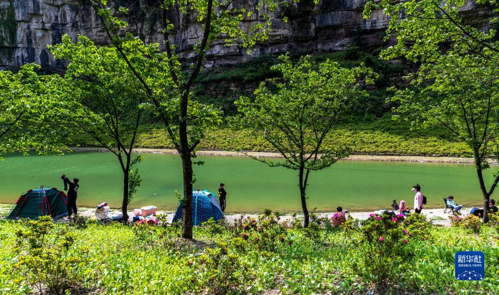 5月2日,游客在重慶市南川區萬卷書臺露營游玩。